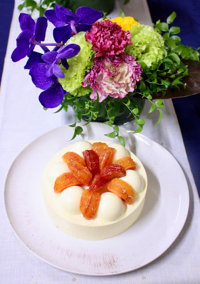 しばらく特注のケーキ、タルトは桃づくしになります。